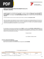 RESOLUCIÓN SOBRE RECONOCIMIENTO DE ALTA: