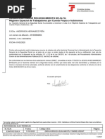 La Tesorería General de la Seguridad Social ha procedido a reconocer el alta en el Régimen Especial de Trabajadores por Cuenta