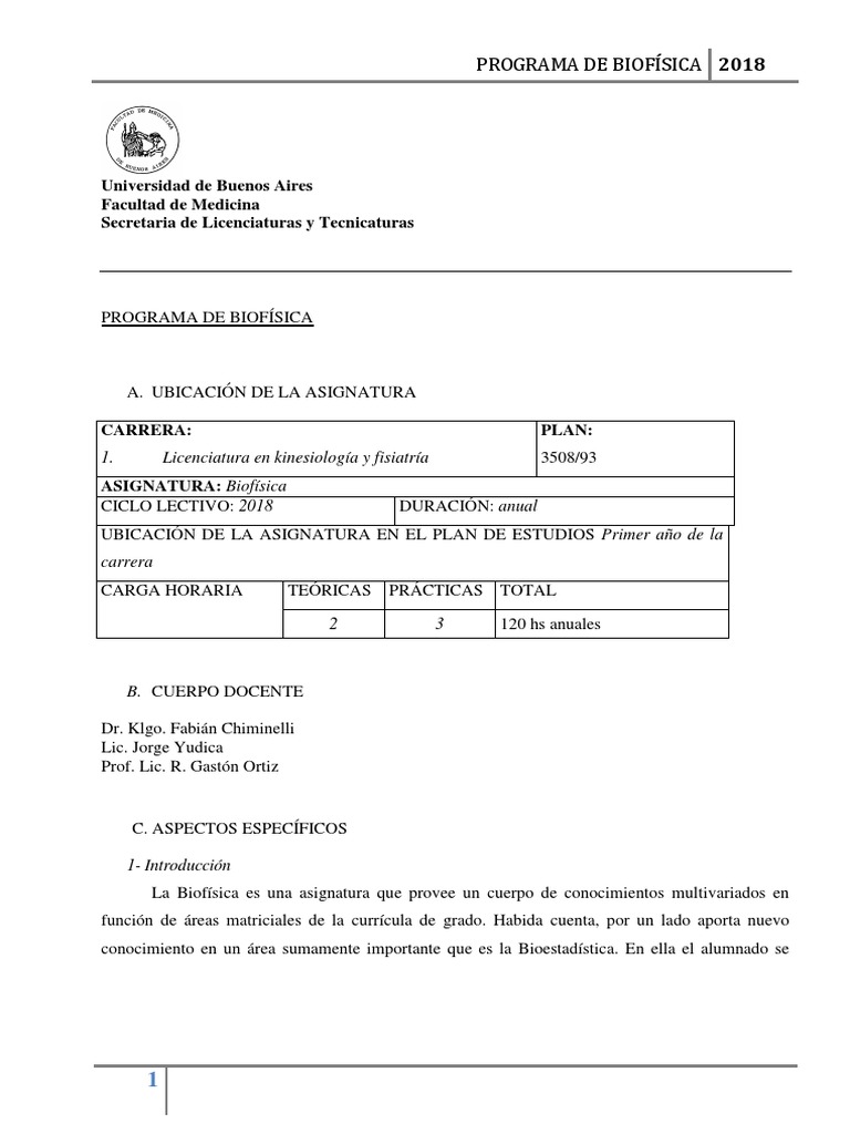 PROGRAMA DE BIOFÍSICA 2018