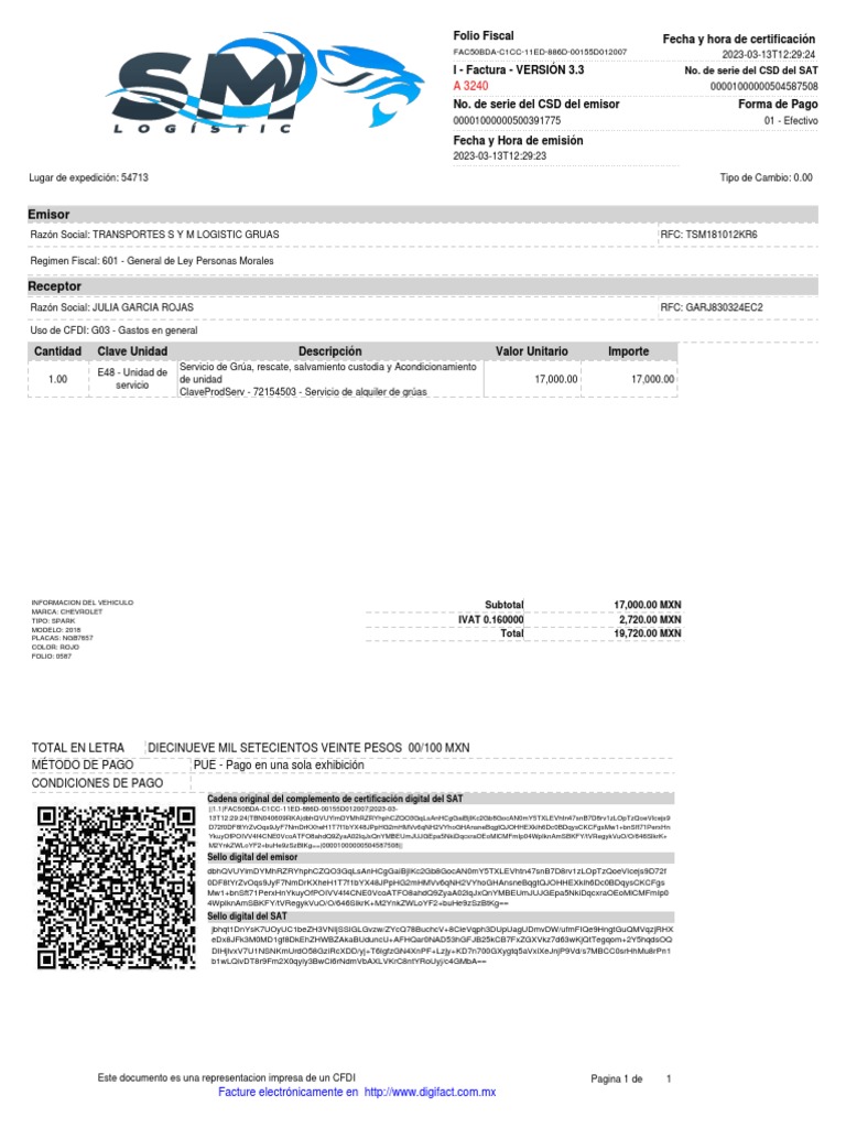 PLACAS: NGB7657 Total 19,720.00 MXN