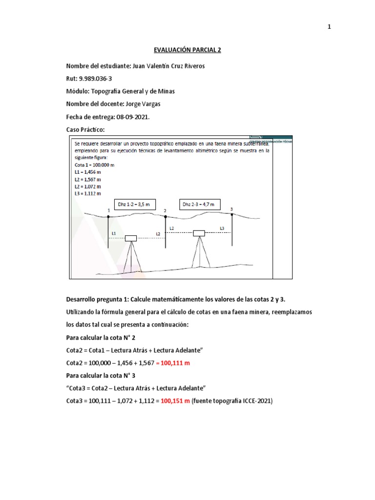 En esta parte del ejercicio, deberemos conocer la cota del punto N° 2 determinada en el