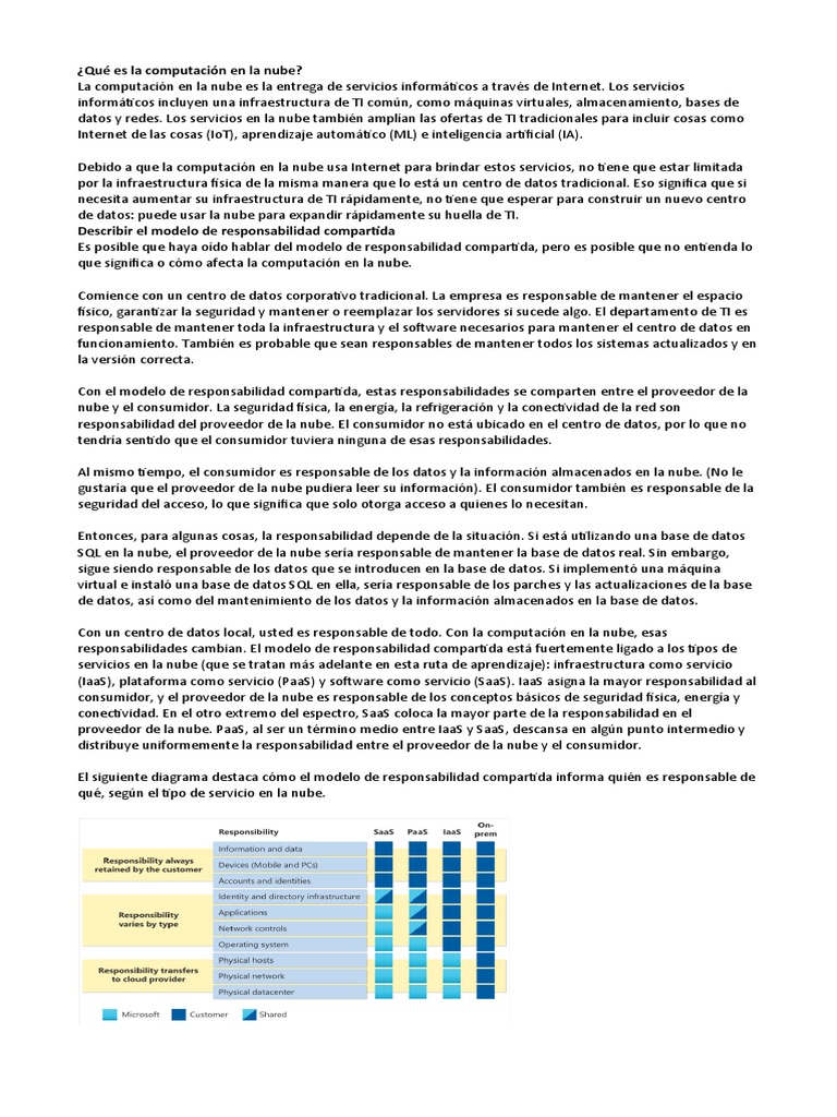 (IaaS), plataforma como servicio (PaaS) y software como servicio (SaaS). IaaS asigna la mayor responsabilidad al