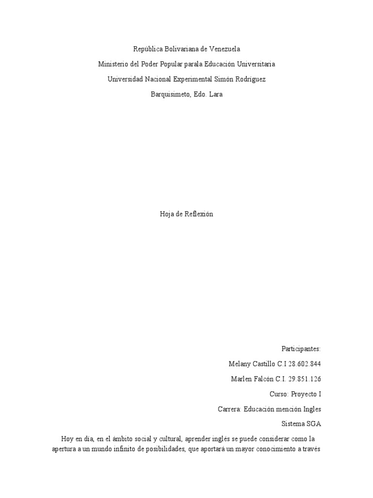 Hoja de Reflexión