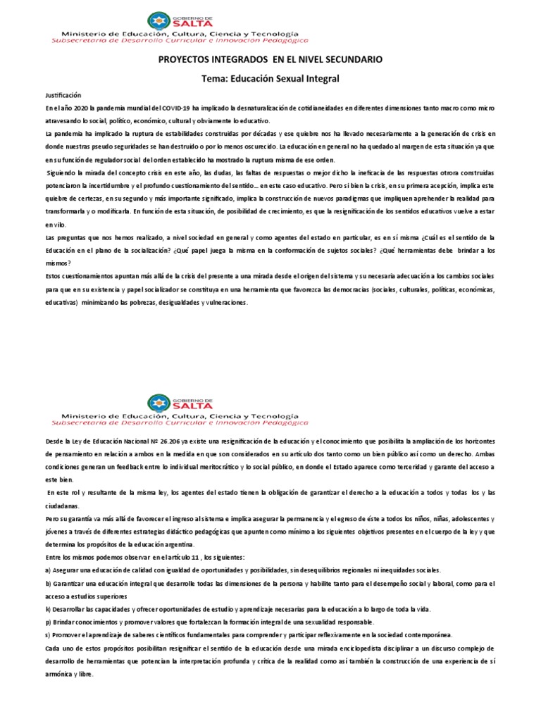Y el trabajo explícito con los NAP de la misma (en este caso en el nivel secundario)