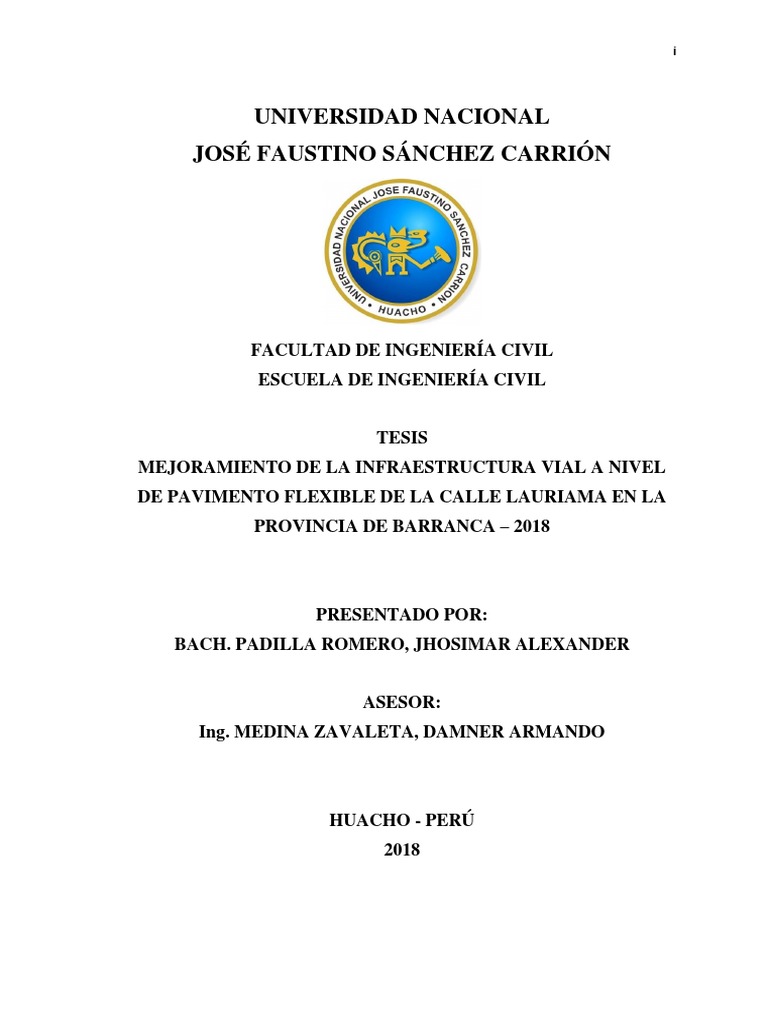 Vial En El Jr. San Martín, Cuadras 6 al 12 - Ilave. UNA-PUNO: Tesis para