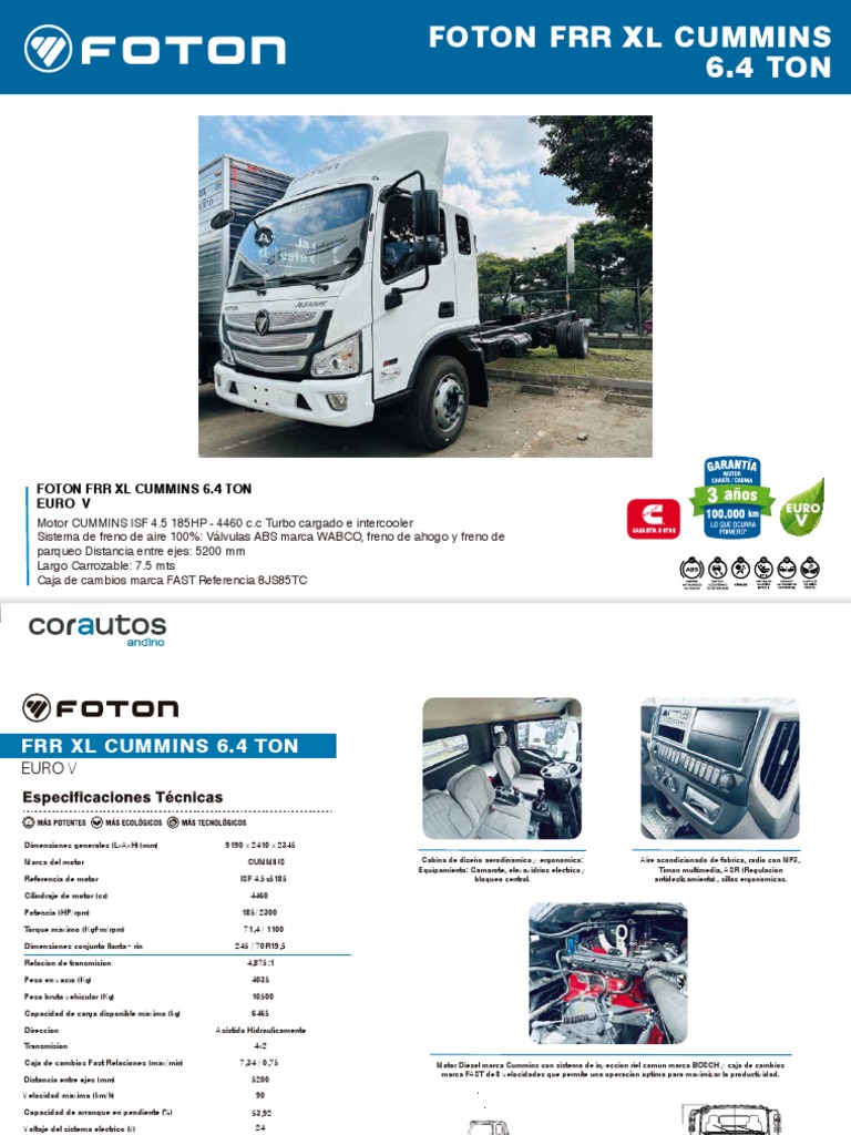 El nombre FRR PRO CUMMINS 6.4 TON HACE REFERENCIA AL BJ1128 PRO