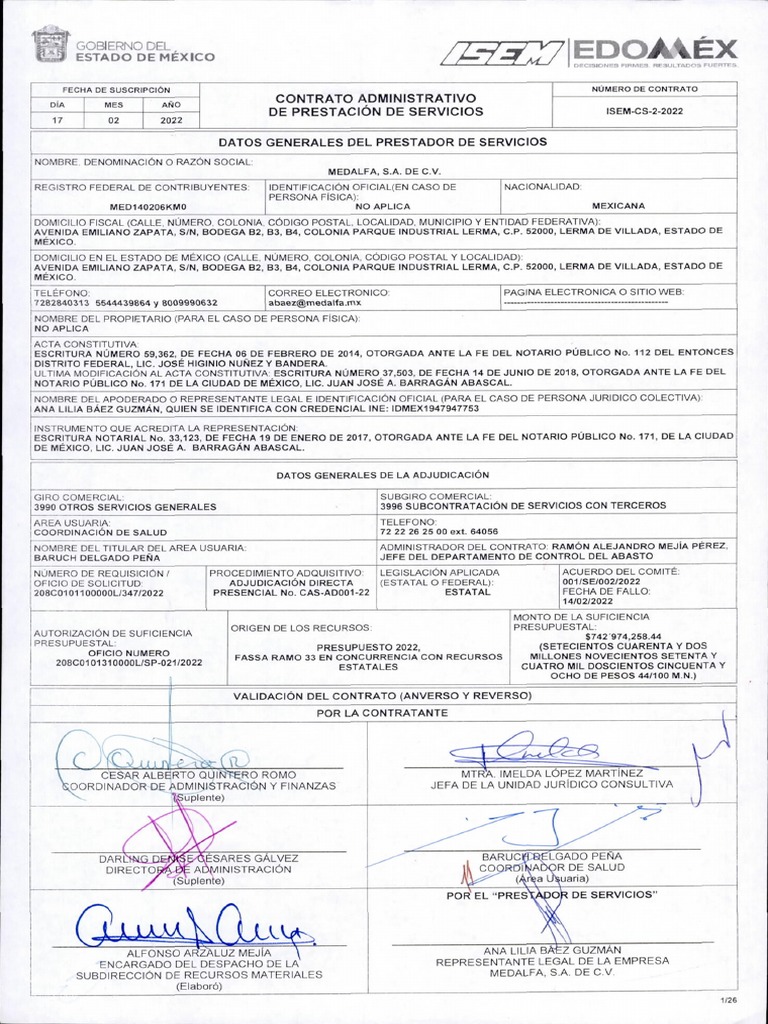 CCONTRATO DE PRESTACION DE SERVICIOS QUE CELEBRAN POR UNA PARTE EL INSTITUTO DE SALUD DEL ESTADO DE MEXICO POR CONDUCTO DEL COOROINADOR DE
