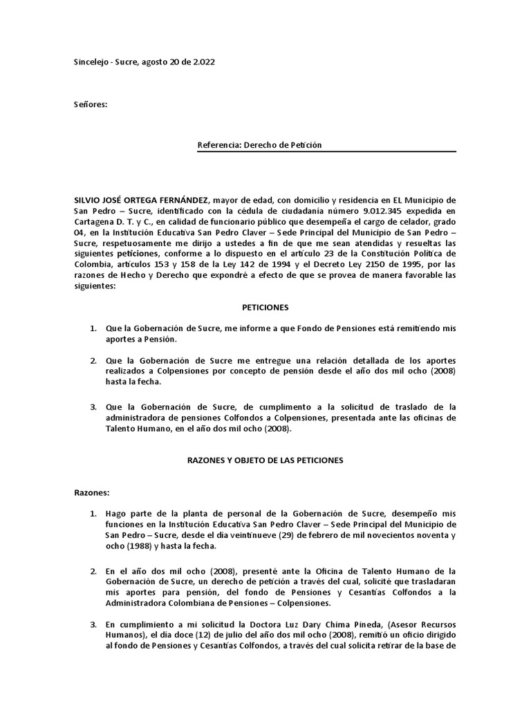 1. Que la Gobernación de Sucre, me informe a que Fondo de Pensiones está remitiendo mis