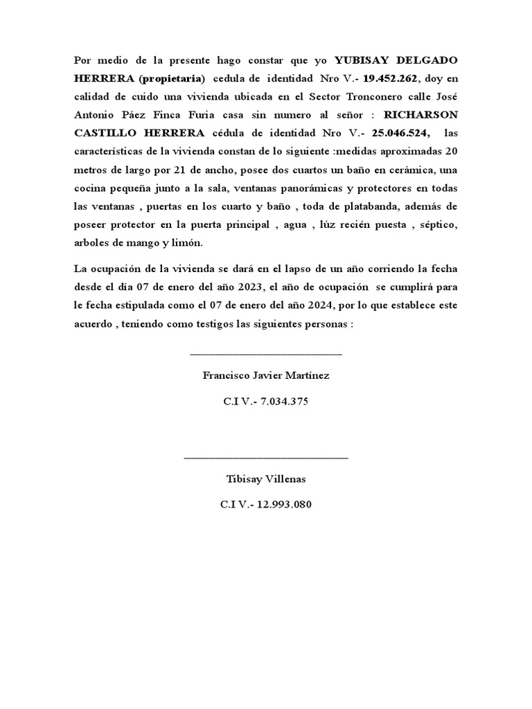 HERRERA (propietaria) cedula de identidad Nro V.- 19.452.262, doy en