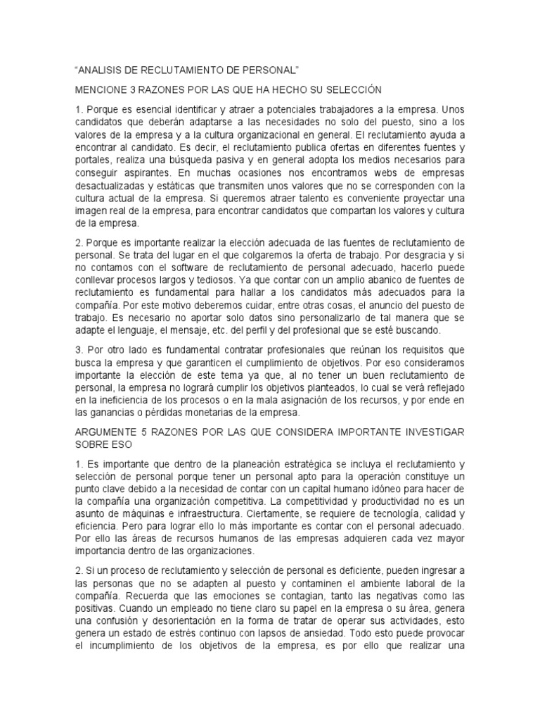 “ANALISIS DE RECLUTAMIENTO DE PERSONAL”