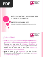 Por lo tanto en este curso aprender con detalles la siguiente informacin: Se desarrollar cada uno de estos temas detalladamente por lo que a lo largo del curso estaremos nutrindonos de mucha informacin SEO. De antemano decir que debido a la gran cantidad de informacin que recibir, se recomienda ver el curso unas 3 veces como mnimo para poder aprovechar al mximo los conocimientos aprendidos 3. 4. 5. 6. 7. 8. Conceptos bsicos Orgenes de SEO y hacia dnde va Importancia del SEO Arte y tcnica la realidad de SEO SEO baile de conceptos Seleccin de palabras claves para su campaa. 8.1 Anlisis competitivos de palabras claves 8.2 Lista de palabras claves por frases 8.3 Lista de palabras claves por URL 8.4 Herramienta Google suggest 8.5 Herramienta Google setslabs 8.6 Anlisis de la competencia 8.7 Relacin de palabras claves Ejemplo como obtener palabras claves 9. Fase de relevancia 9.1 Donde potenciar la relevancia 9.2 Head: a) Tittle, b) Description y c) Keywords 9.3 Estructura semntica y Estructura jerrquica de la web 10. Fase de relevancia. 10.1 Estructura semntica 10.2 BODY: 10.2.1 Consideraciones generales 10.2.2. Conceptos de evaluacin de las Keywords: a) La prominencia de las palabras clave. b) Frecuencia de las palabras clave. c) La relevancia de las palabras clave. d) La proximidad de las palabras clave e) La densidad de las palabras claves. f) Cmo aumentar la popularidad con el trabajo de redaccin? g) Cul es el truco para aumentar la popularidad estratgicamente? 10.4 Uso del atributo Nofollow. 10.5 Validacin del cdigo HTML. 10.6 Validacin del cdigo CSS. 10.7 Validacin QWeb.
