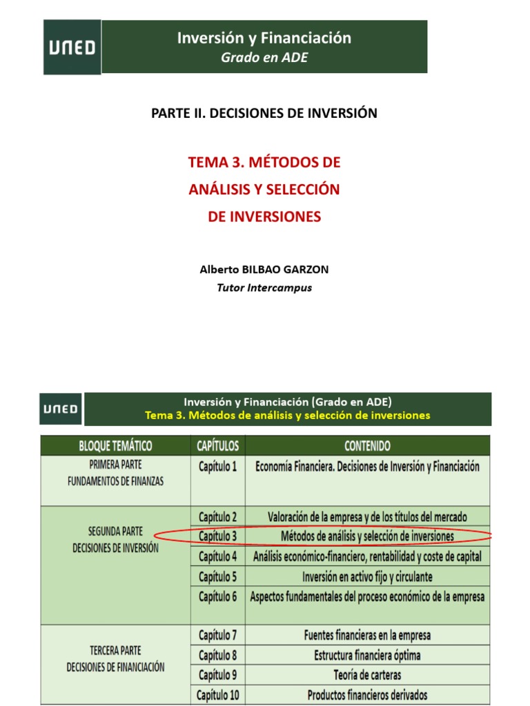 Tema 3. Métodos de análisis y selección de inversiones