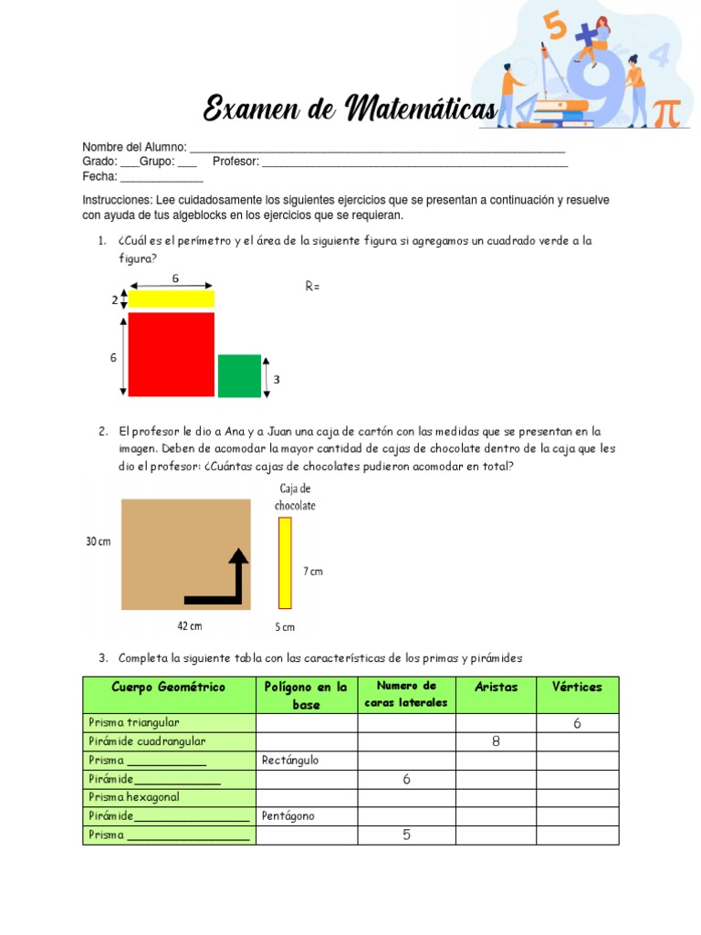 2. El profesor le dio a Ana y a Juan una caja de cartón con las medidas que se presentan en la