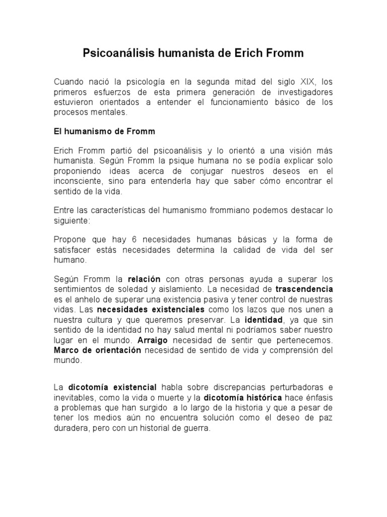 humanista. Según Fromm la psique humana no se podía explicar solo