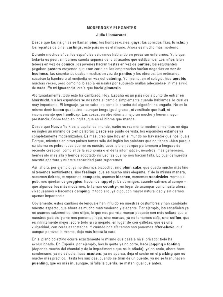 nuestros padres; ya no nos ponemos ropa, sino marcas; ya no tomamos café, sino coffee, que