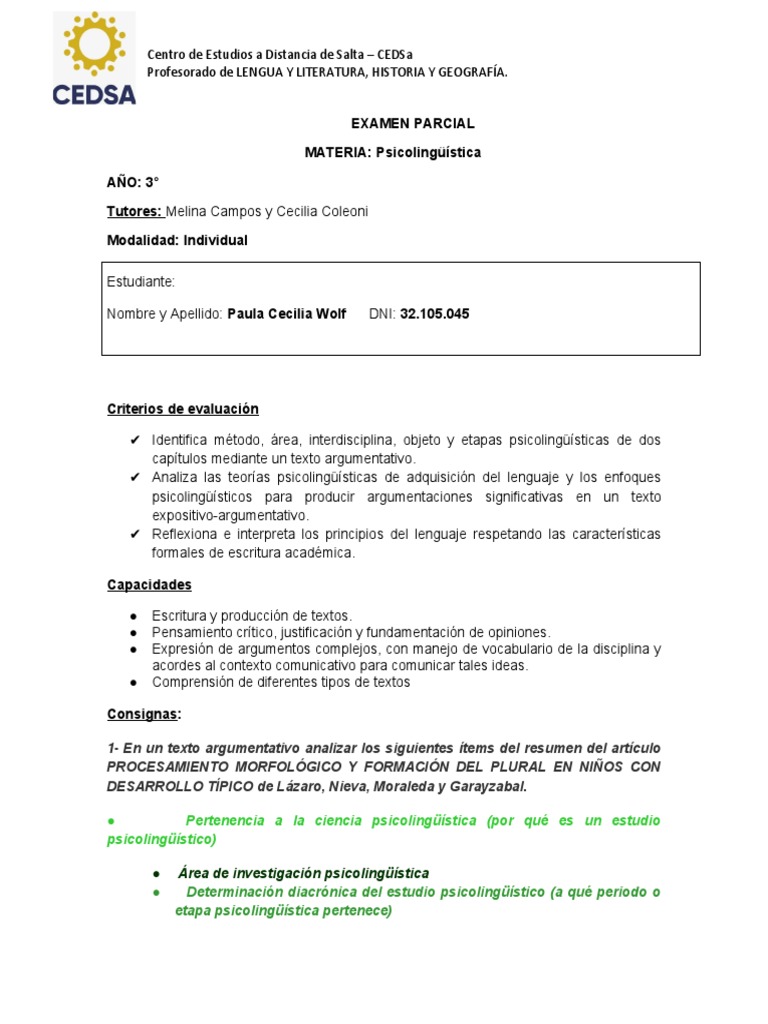 módulos 1, 2 leé Los aportes para educ@r sobre Psicolingüística. A partir de este