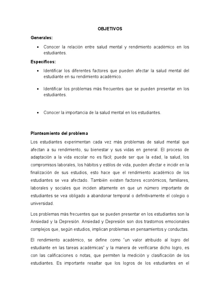 Conocer la relación entre salud mental y rendimiento académico en los