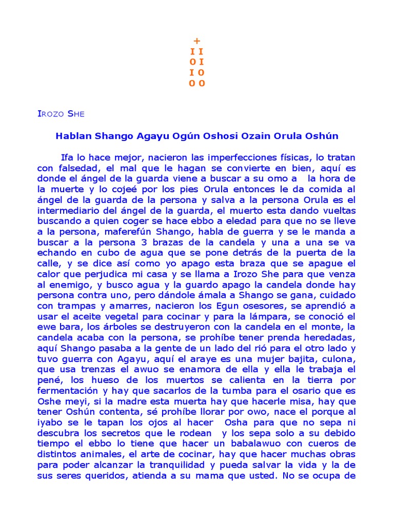 Hablan Shango Agayu Ogún Oshosi Ozain Orula Oshún