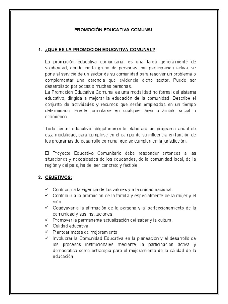1. ¿QUÉ ES LA PROMOCIÓN EDUCATIVA COMUNAL?