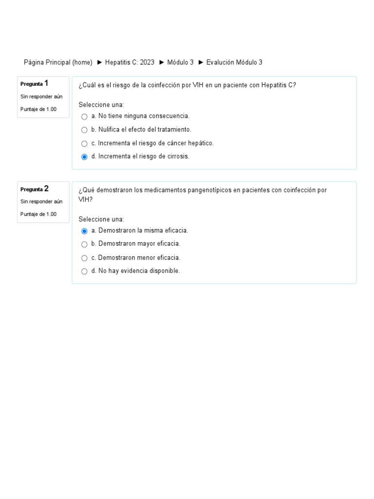 Página Principal (home) ► Hepatitis C: 2023 ► Módulo 3 ► Evalución Módulo 3