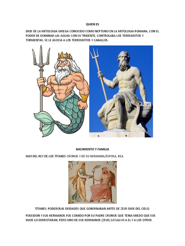 POSEIDON Y SUS HERMANOS FUE COMIDO POR SU PADRE CRONOS QUE TENIA MIEDO QUE SUS