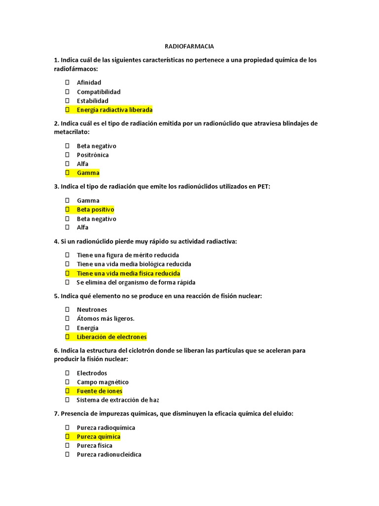 10. Indica la respuesta correcta, relacionado con los radiofármacos utilizados en el marcaje