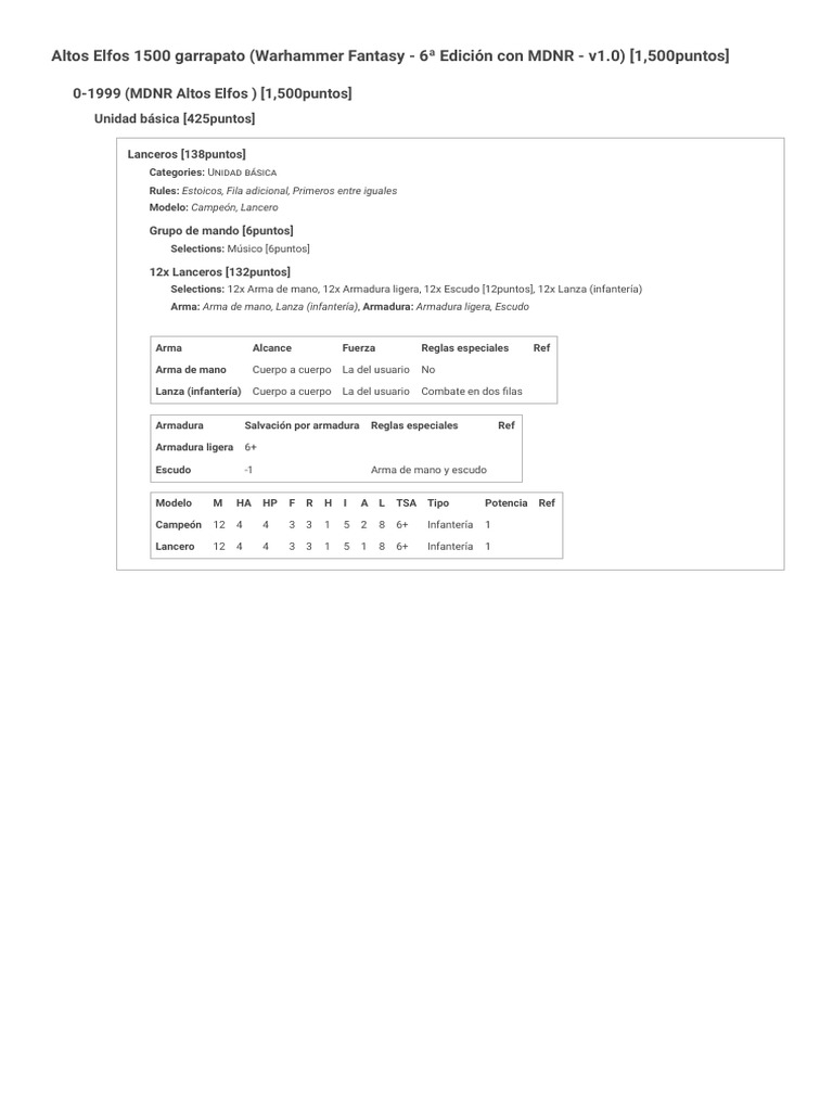Altos Elfos 1500 garrapato (Warhammer Fantasy - 6ª Edición con MDNR - v1.