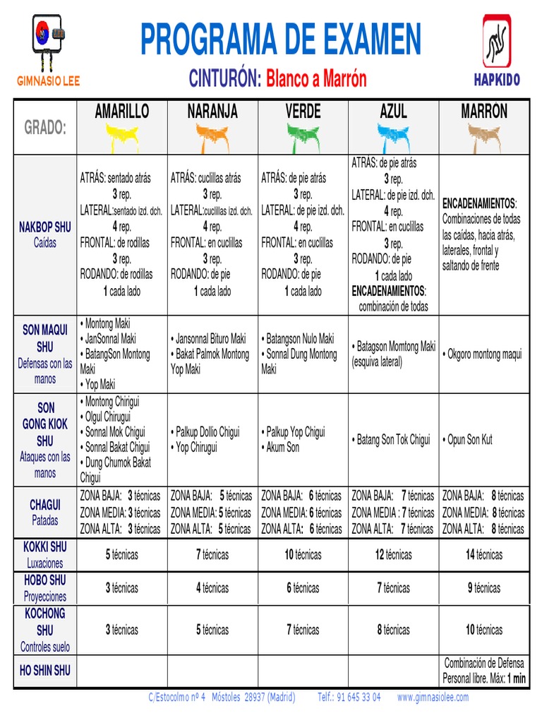 GIMNASIO LEE CINTURÓN: Blanco a Marrón HAPKIDO