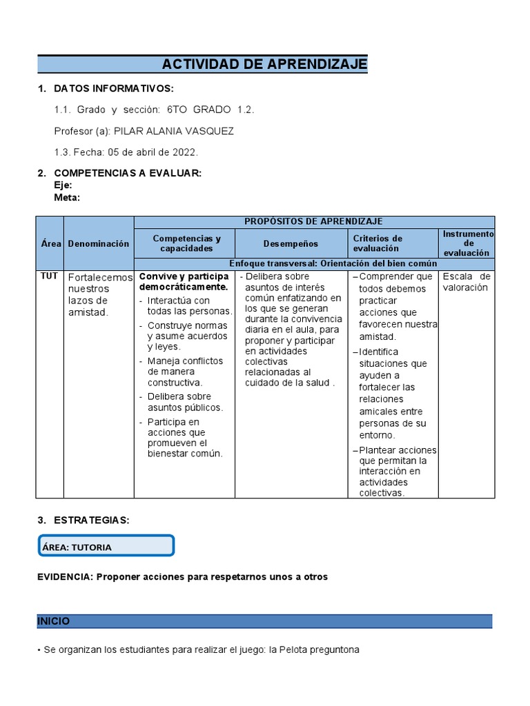 1.1. Grado y sección: 6TO GRADO 1.2.