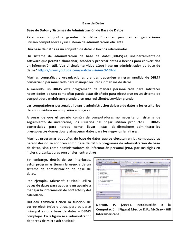 Base de Datos y Sistemas de Administración de Base de Datos