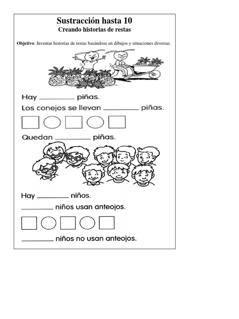 Objetivo: Inventar historias de restas basándose en dibujos y situaciones diversas.