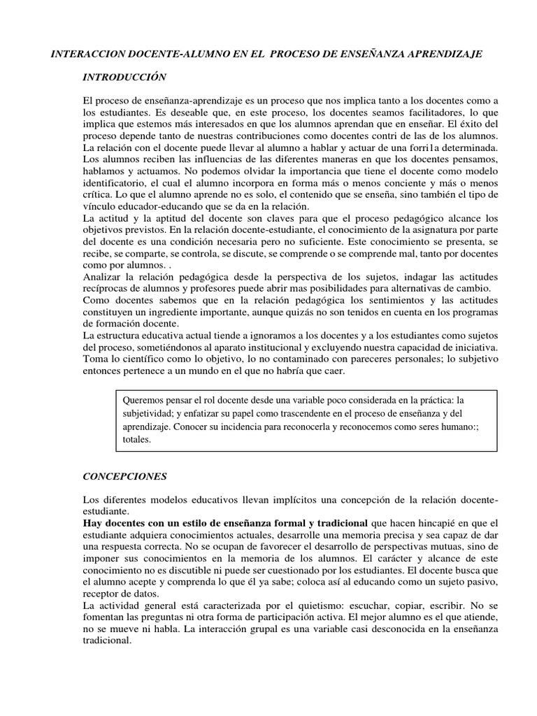 INTERACCION DOCENTE-ALUMNO EN EL PROCESO DE ENSEÑANZA APRENDIZAJE