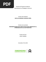 frente a las vivencias y experiencias tanto de los alumnos como de los docentes. El aprendizaje