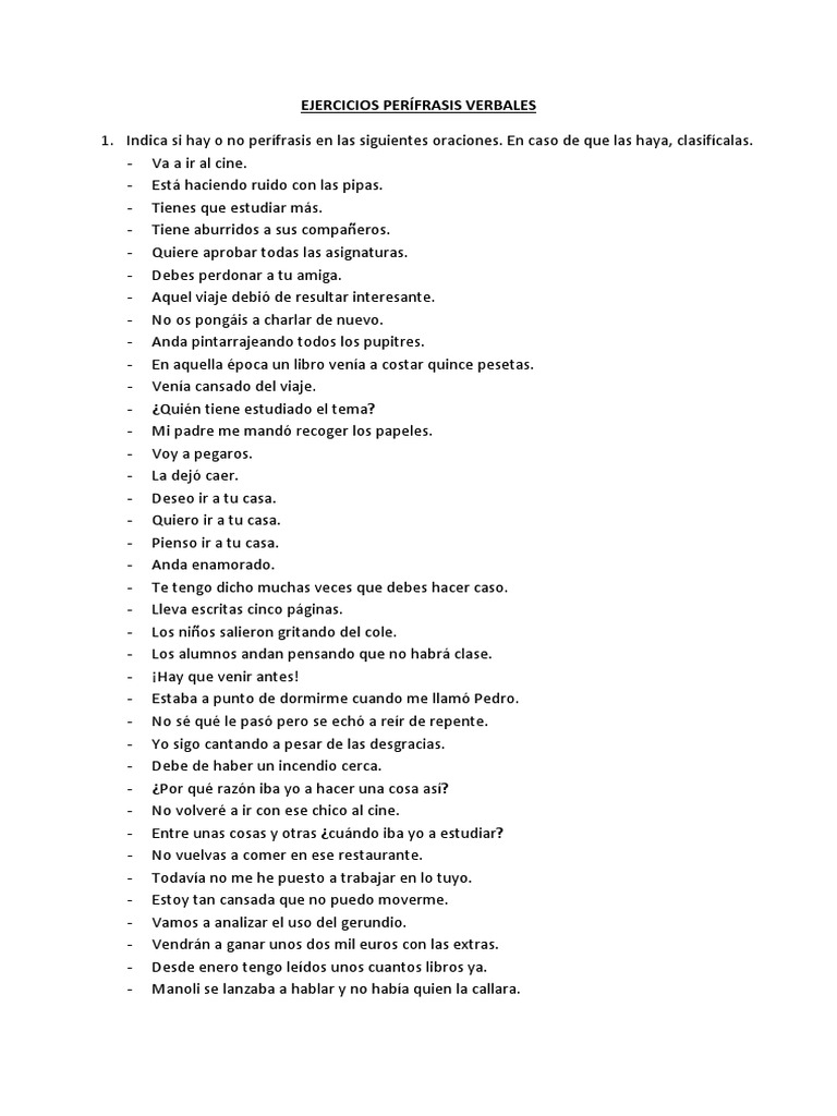 1. Indica si hay o no perífrasis en las siguientes oraciones. En caso de que las haya, clasifícalas.