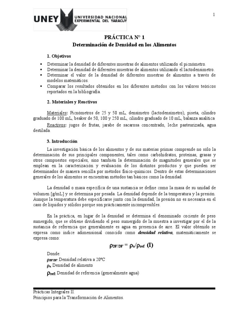 Experimento Nº 1: Determinación de Densidad en los Alimentos mediante el Uso del