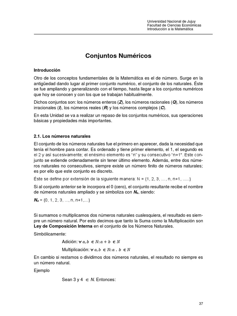 En esta Unidad se va a realizar un repaso de los conjuntos numéricos, sus operaciones