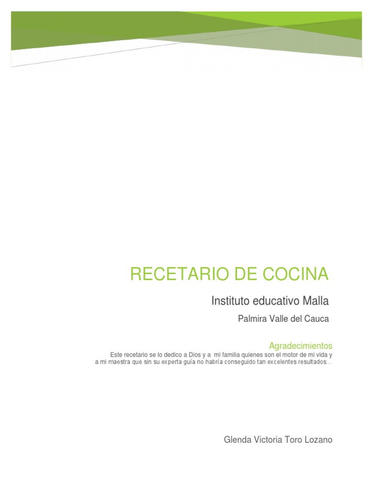 Este recetario es una muestra del trabajo desarrollado en el Instituto educativo Malla