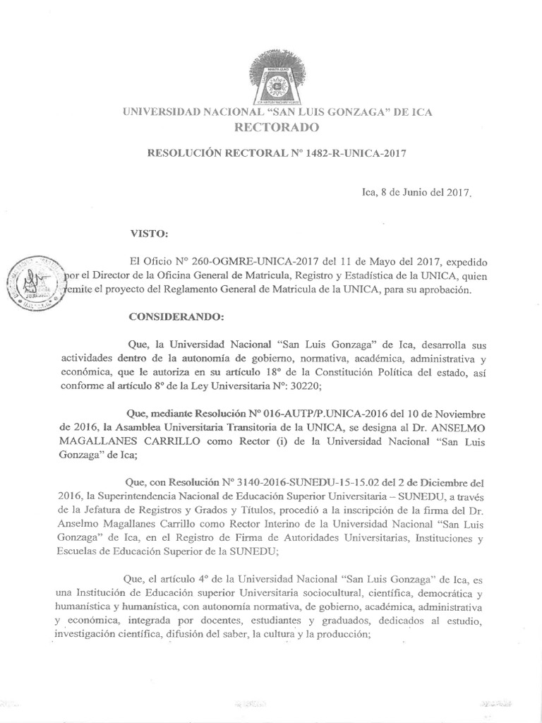 Gonzaga”. Será utilizado e implementado por la Oficina General de Matrícula,
