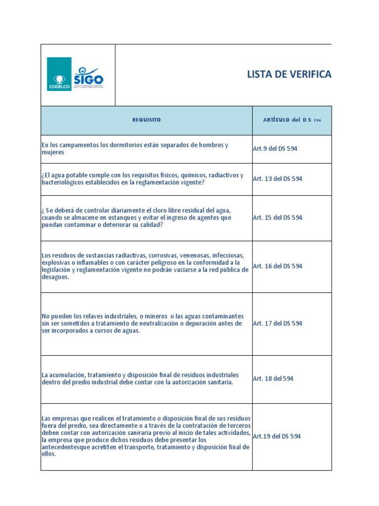 REQUISITO ARTÍCULO del D.S. 594