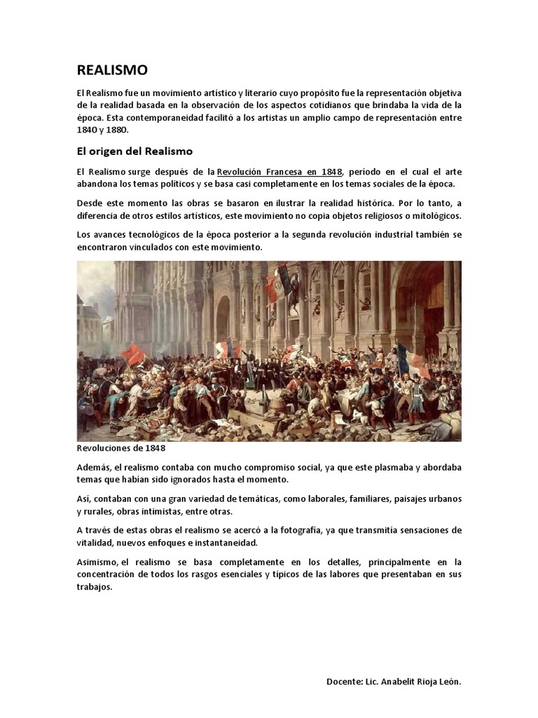 El Realismo surge después de la Revolución Francesa en 1848, período en el cual el arte
