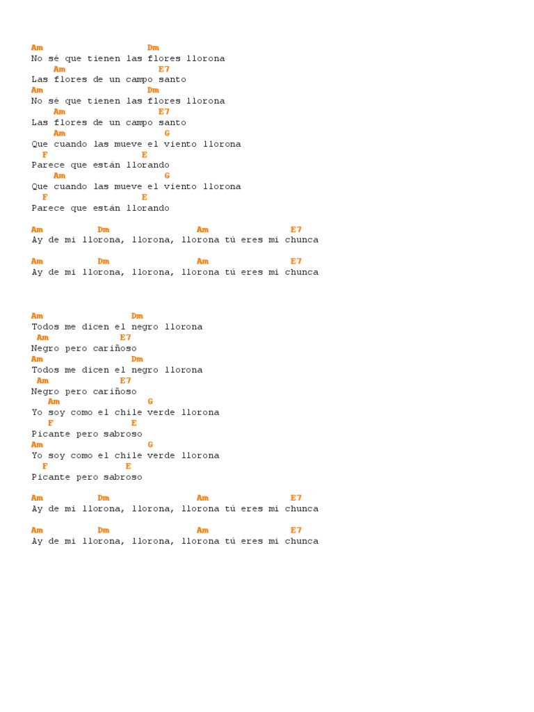 Ay de mi llorona, llorona, llorona tú eres mi chunca