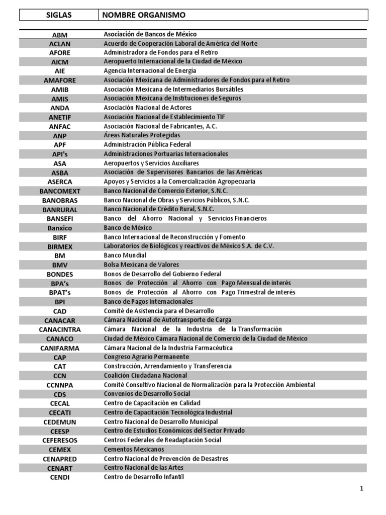 SIGLAS NOMBRE ORGANISMO