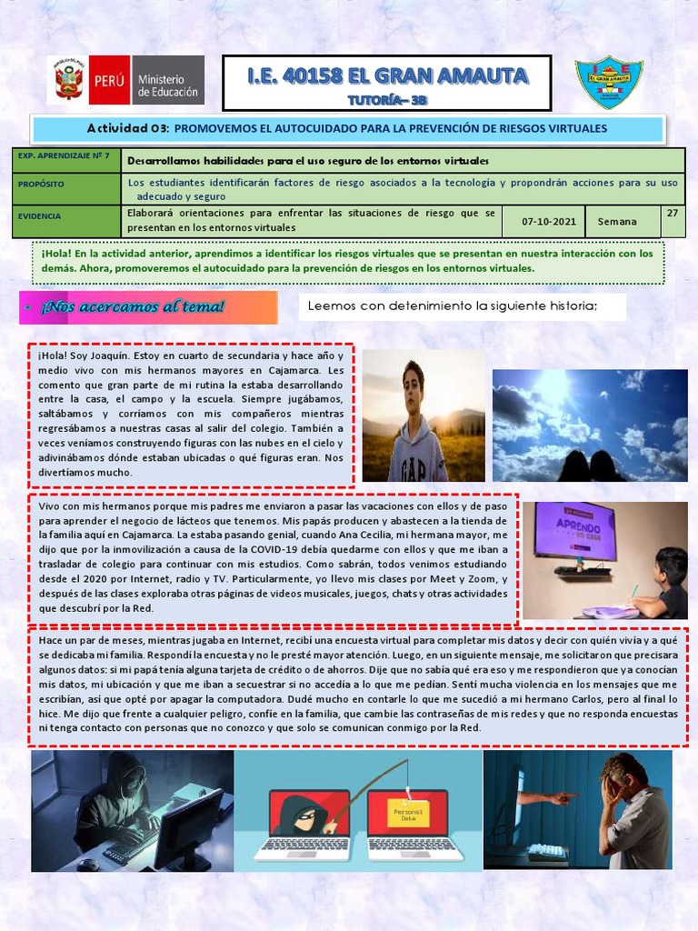 Actividad 03: PROMOVEMOS EL AUTOCUIDADO PARA LA PREVENCIÓN DE RIESGOS VIRTUALES
