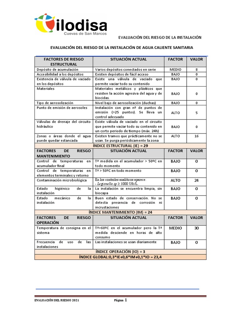 EVALUACIÓN DEL RIESGO DE LA INSTALACIÓN DE AGUA CALIENTE SANITARIA