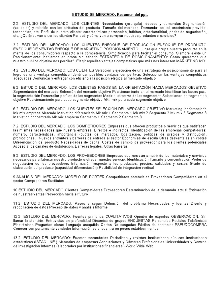ESTUDIO DE MERCADO. Resumen del ppt.