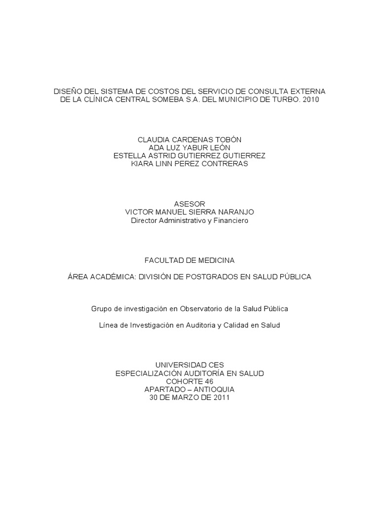 DE LA CLÍNICA CENTRAL SOMEBA S.A. DEL MUNICIPIO DE TURBO. 2010