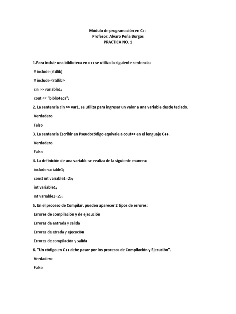 2. La sentencia cin >> var1, se utiliza para ingresar un valor a una variable desde teclado.