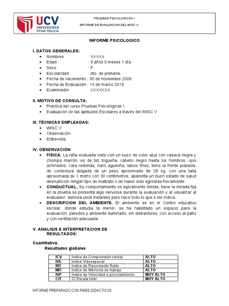 INFORME PREPARADO CON FINES DIDACTICOS