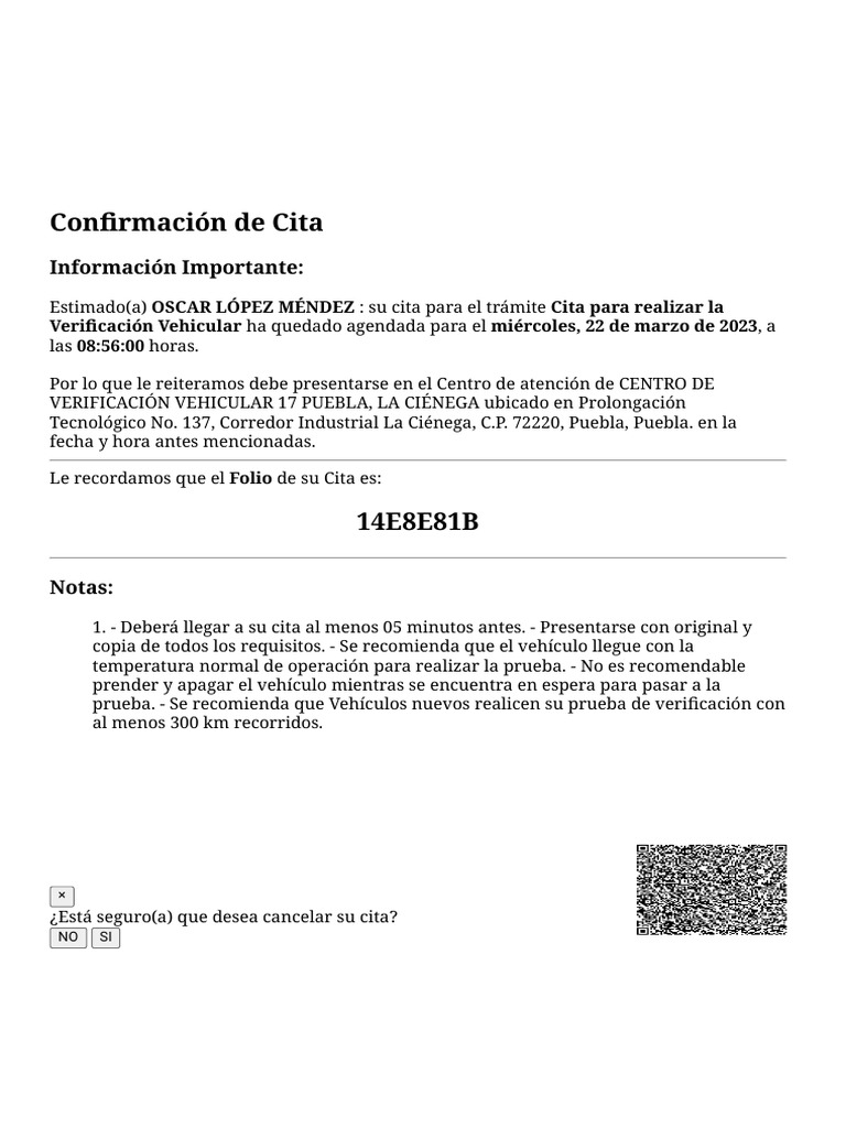 Estimado(a) OSCAR LÓPEZ MÉNDEZ : su cita para el trámite Cita para realizar la