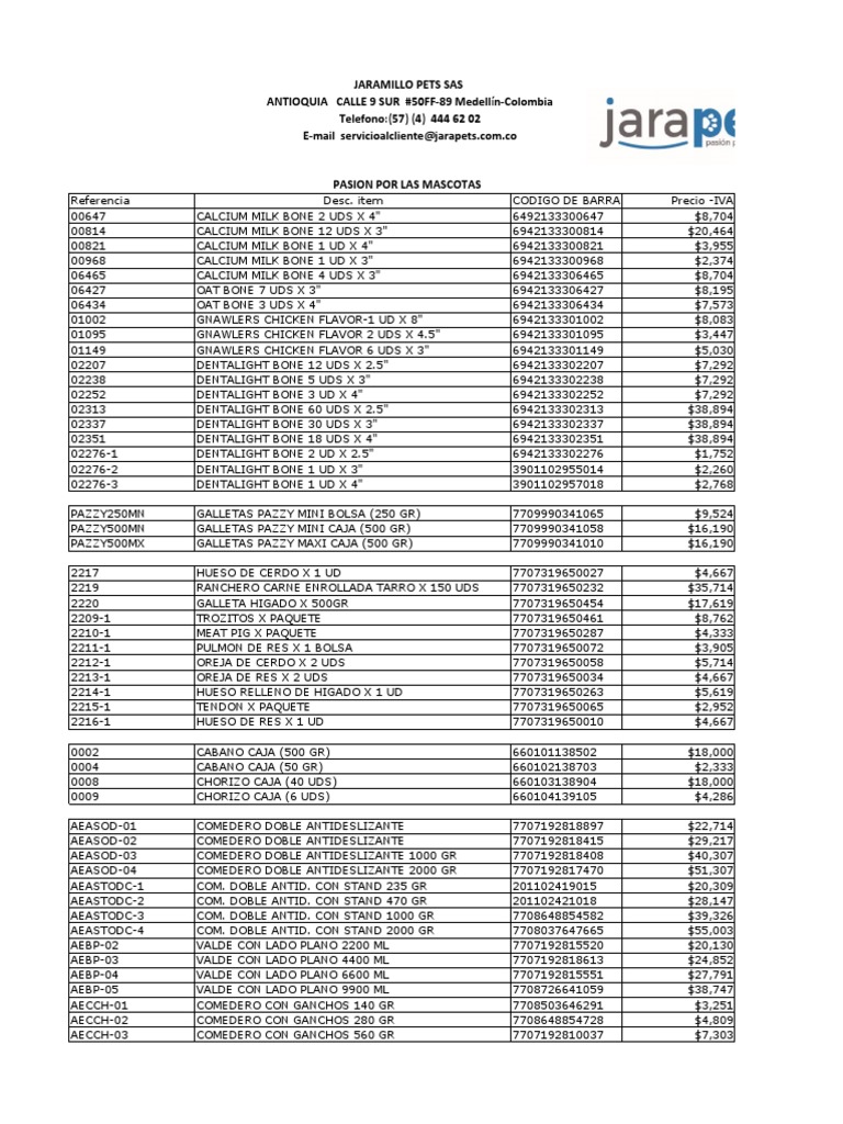 Referencia Desc. item CODIGO DE BARRAS Precio -IVA